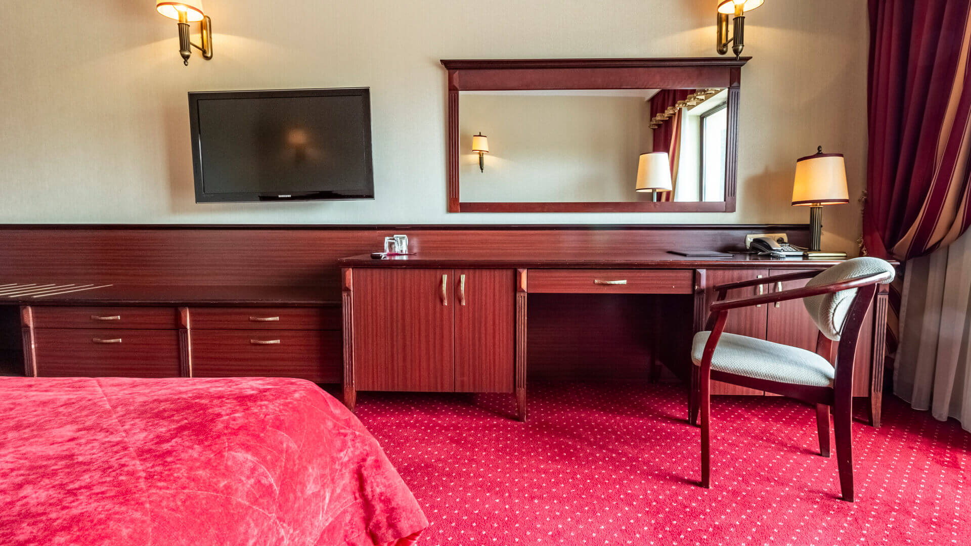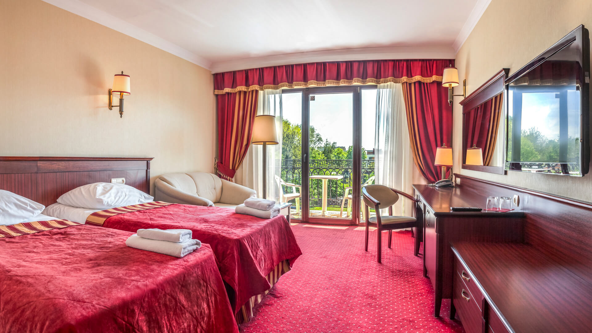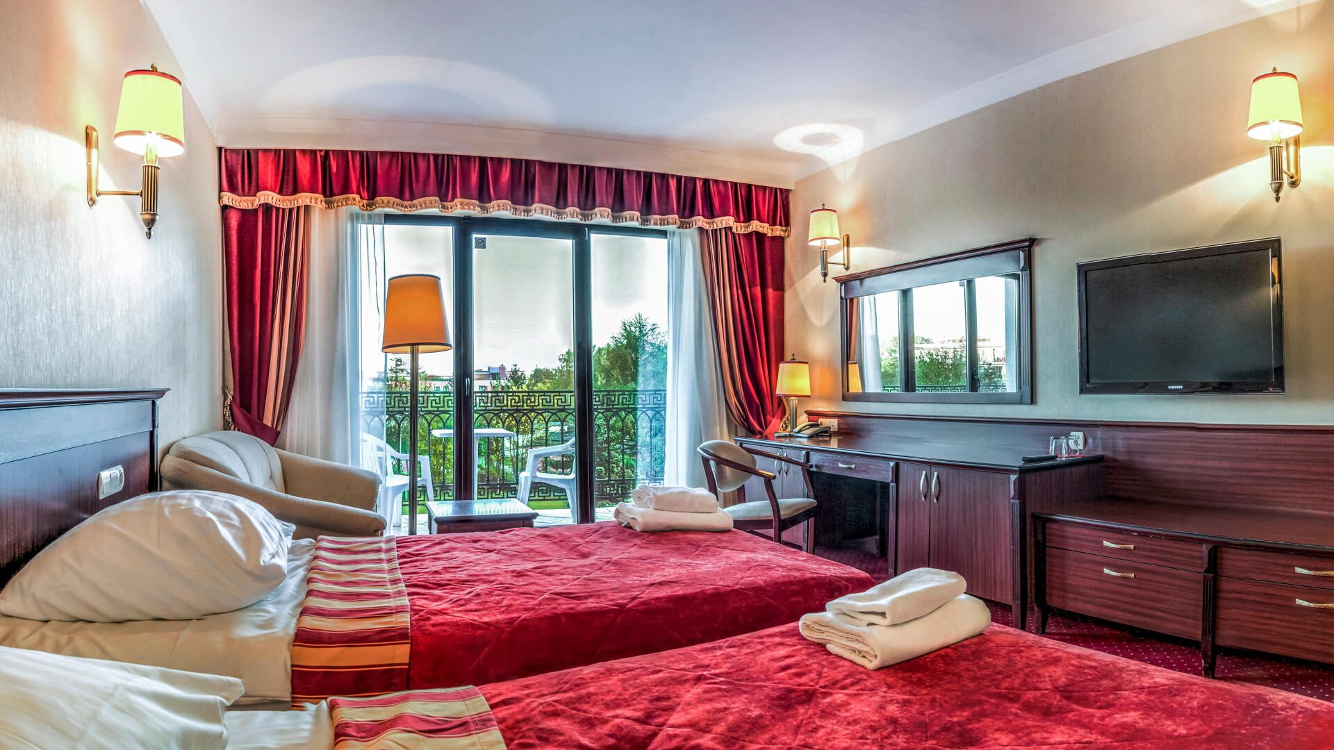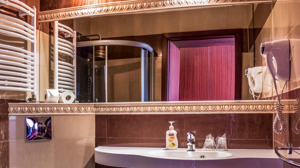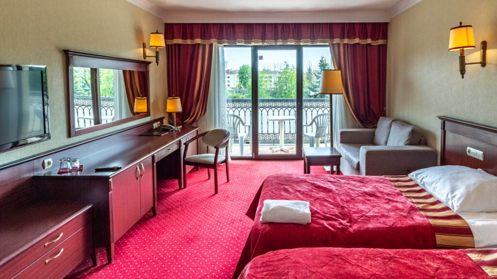 Dla bezpieczeństwa gości pokój wyposażony jest w sejf, a zasłony zaciemniające pozwalają na pełny relaks, gwarantując ciszę i spokój przez całą noc.